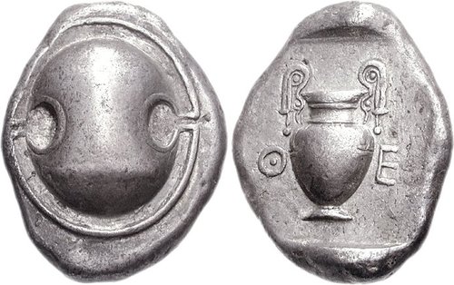 BOEOTIA, Thebes. Circa 425-400 BC. AR Stater (11.96 g, 6h). Boeotian shield; club across upper half / Amphora;