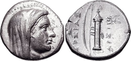 Lysimachos made himself master of Ephesos in 295 BC and shortly thereafter changed the city's name to Arsinoeia in honor of his wife, the daughter of Ptolemy I Soter. After the death of Lysimachos in 280 BC, Arsinoë married her half brother Ptolemy Keraunos and later her full brother Ptolemy II Philadelphos. She became the first Ptolemaic ruler to enter the Egyptian temples as "temple-sharing goddess," and was revered by the later Ptolemies.