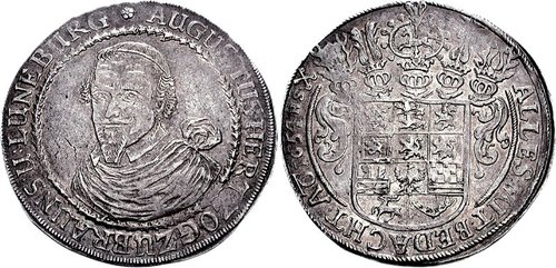 GERMANY, Braunschweig-Lüneburg. Principality of Wolfenbüttel. August the Younger. Duke, 1635-1666. AR Taler (28.76 g, 9h). Zellerfeld mint. Dated 1654. Bust facing half-left / Helmeted coat of arms; horse above. Welter 808; Davenport 6351; KM 441. Near EF, toned.