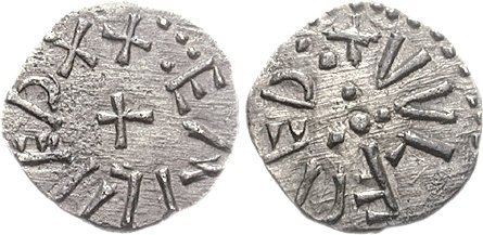 \ EDILRED X, cross pattée / +VVLFRED:, cross of five pellets. Pirie 874 (same dies); North 188; SCBC 865. Good VF. Attractive surfaces.