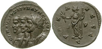 According to Shiel, this issue portrays Carausius' propaganda policies within his own sphere of influence. It was important not so much the way he was viewed by those outside of his domain, but rather how he was perceived by his own subjects, and thus the fraternal aspect of the obverse portraiture.