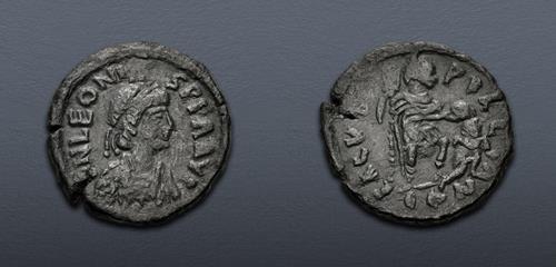 Electronic Auction 534 Lot: 759. Leontius. 695-698. AV Tremissis (15mm, 1.32 g, 6h). Constantinople mint. In ANACS encapsulation 7288706, graded VF 30, bends.