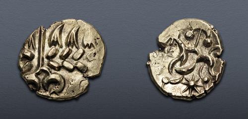 CNG Feature Auction 124 Lot: 998. CELTIC, Iceni. Uninscribed. Circa 20 BC - AD 10. AV Stater (17mm, 5.60 g). Freckenham Flower, crescent type (Icenian B). Good VF.