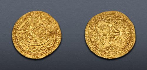 CNG Feature Auction 124 Lot: 1022. PLANTAGENET. Edward III. 1327-1377. AV Noble (33mm, 7.69 g, 9h). Pre-Treaty period, class G. Tower (London) mint; im: cross 3. Struck 1356-1361. Good VF.