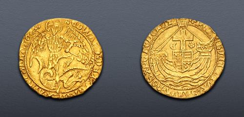 CNG Feature Auction 124 Lot: 1023. PLANTAGENET. Edward III. 1327-1377. AV Half Noble (25mm, 3.77 g, 9h). Fourth coinage, Treaty period, Series A (Transitional). Tower (London) mint. Struck 1361. Near VF.