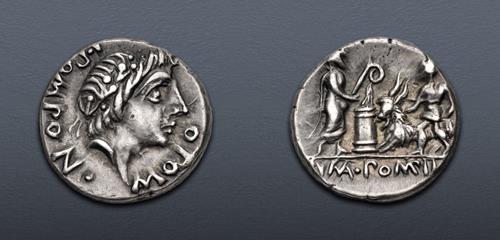 Electronic Auction 547 Lot: 796. The Triumvirs. Mark Antony and Octavian. Spring-early summer 41 BC. AR Denarius (18mm, 3.82 g, 12h). Ephesus mint; M. Barbatius Pollio, quaestor pro praetore. VF.