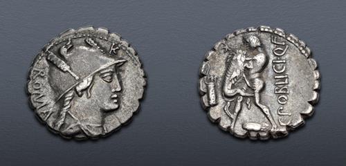 Electronic Auction 547 Lot: 730. C. Poblicius Q.f. 80 BC. AR Serrate Denarius (17.5mm, 4.03 g, 8h). Rome mint. VF.