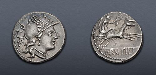Electronic Auction 547 Lot: 733. L. Rutilius Flaccus. 77 BC. AR Denarius (18mm, 3.71 g, 8h). Rome mint. VF.
