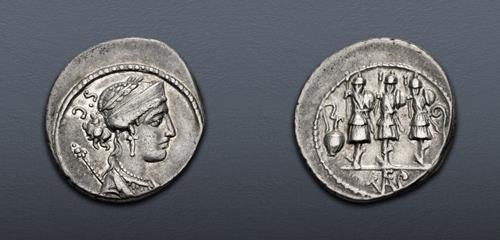 Electronic Auction 547 Lot: 724. Pub. Crepusius. 82 BC. AR Denarius (18mm, 4.09 g, 1h). Rome mint. VF.