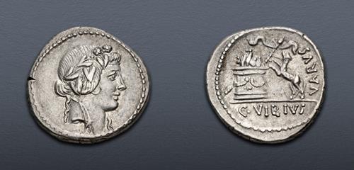 Electronic Auction 547 Lot: 773. Moneyer issues of Imperatorial Rome. C. Vibius Varus. 42 BC. AR Denarius (17.5mm, 3.91 g, 9h). Rome mint. Good VF.