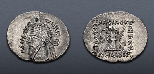 Electronic Auction 547 Lot: 480. KINGS of PARTHIA. Vologases VI. Circa AD 208-228. AR Drachm (20mm, 3.65 g, 12h). Ekbatana mint. EF.