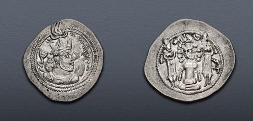 Electronic Auction 547 Lot: 536. SASANIAN KINGS. Ohrmazd (Hormizd) IV. AD 579-590. AR Drachm (28.5mm, 3.83 g, 3h). YZ (Yazd) mint. Dated RY 6 (AD 584/5). EF.