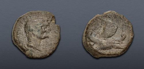Electronic Auction 547 Lot: 563. ACHAEA. Mark Antony & Octavia. Summer 37 BC. Æ As (21mm, 12.81 g, 11h). Fleet Coinage. Heavy series. L. Sempronius Atratinus, augur and consul designatus. Fine.