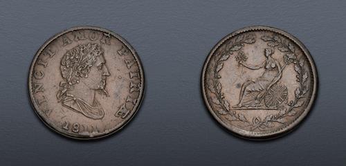 Lot: 1413. 19th CENTURY, Non-local. CU Penny Token (34mm, 16.95 g, 12h). Struck early 1810s. Good VF.