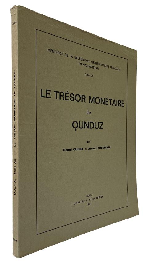 Lot: 1473. Curiel, Raoul & Fussman, Gérard. Le trésor monétaire de Qunduz. (Paris: Librairie C. Klincksieck, 1965).