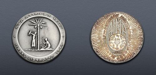 Electronic Auction 551 Lot: 780. ISRAEL. 1948-pres. AR Medal (38mm, 25.72 g, 12h). The Liberation of Israel – American-Israel Numismatic Association. Dated 1948 and 1967. EF.
