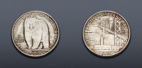 Electronic Auction 551 Lot: 810. 1936 S Bay Bridge Commemorative Half Dollar. PCGS MS 66 CAC. 34068160.