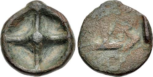 Electronic Auction 552 Lot: 906. GREEK. Northern Greece. Lot of three (3) early cast bronze ‘wheel’ issues of Moesia, Istros.