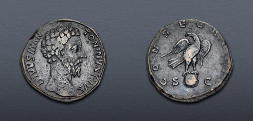 Electronic Auction 552 Lot: 507. Divus Marcus Aurelius. Died AD 180. Æ Sestertius (29.5mm, 24.44 g, 12h). Consecration issue. Rome mint. Struck under Commodus, AD 180. VF.