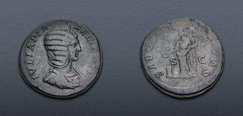 Electronic Auction 552 Lot: 532. Plautilla. Augusta, AD 202-205. AR Denarius (18mm, 1.88 g, 6h). Rome mint. Struck under Septimius Severus and Caracalla, AD 202-203. VF.