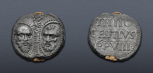 Electronic Auction 552 Lot: 728. ITALY, Papal (Papal state). Innocent IV. 1243-1254. PB Bulla – Seal (39mm, 38.63 g, 12h). Near VF.