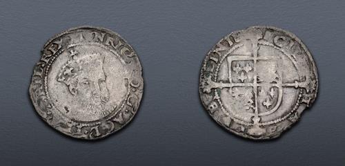 Electronic Auction 552 Lot: 849. IRELAND. Edward VI. 1547-1553. AR Sixpence (26mm, 2.31 g, 10h). Old Head coinage. Dublin mint; im: P. Struck in the name of Henry VIII, 1547-circa 1550. Fine.