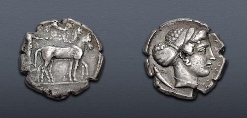 Electronic Auction 552 Lot: 876. REPRODUCTIONS, SICILY. Entella. Punic issues. Circa 320-315 BC. Cast “AR Tetradrachm” (26mm, 14.47 g, 6h). As made.