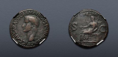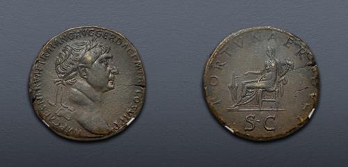 Electronic Auction 556 Lot: 518. Hadrian. AD 117-138. Æ Dupondius (26mm, 11.50 g, 6h). Rome mint. Struck April AD 121-123. NGC AU, 5/5, 3/5, Fine Style.
