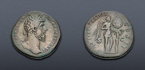Electronic Auction 556 Lot: 548. Marcus Aurelius. AD 161-180. Æ Sestertius (30.5mm, 27.36 g, 6h). Rome mint. Struck AD 177. NGC VF, 4/5, 3/5.