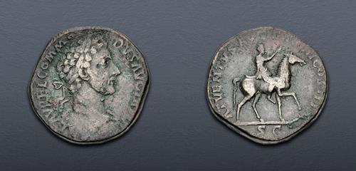 Electronic Auction 556 Lot: 531. Antoninus Pius, with Marcus Aurelius as Caesar. AD 138-161. Æ Sestertius (33mm, 24.77 g, 1h). Rome mint. Struck circa AD 141-143. Near VF.