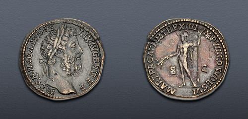 Electronic Auction 556 Lot: 547. Marcus Aurelius. AD 161-180. AR Denarius (18mm, 3.64 g, 6h). Rome mint. Struck AD 174. Good VF.