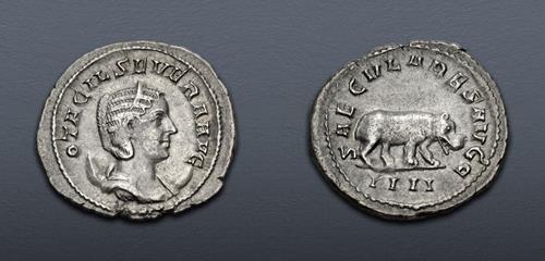 Electronic Auction 556 Lot: 623. Otacilia Severa. Augusta, AD 244-249. AR Antoninianus (24mm, 4.18 g, 6h). Ludi Saeculares (Secular Games) issue, commemorating the 1000th anniversary of Rome. Rome mint, 4th officina. 9th emission of Philip I, AD 248. Good VF.