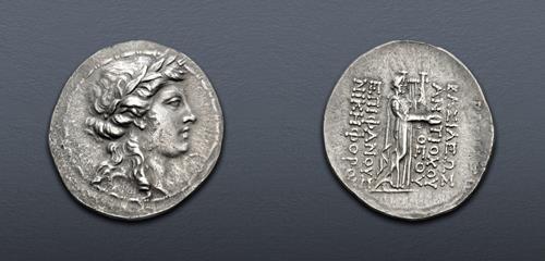 Triton XXVIII Lot: 359. SELEUKID EMPIRE. Antiochos IV Epiphanes. 175-164 BC. AR Tetradrachm (34.5mm, 16.46 g, 12h). Antioch on the Orontes mint. Series 3, struck circa 166 BC. VF.