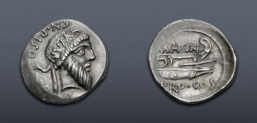 Triton XXVIII Lot: 623. The Triumvirs. Mark Antony. April-May 44 BC. AR Denarius (19mm, 4.04 g, 3h). Rome mint; P. Sepullius Macer, moneyer. Good VF.
