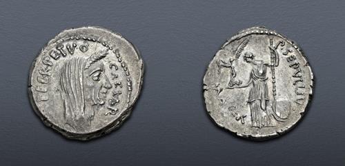 Triton XXVIII Lot: 605. C. Coelius Caldus. 53 BC. AR Denarius (18mm, 3.93 g, 7h). Rome mint. EF.