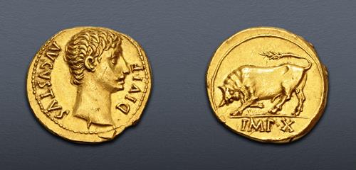 Triton XXVIII Lot: 635. Augustus. 27 BC-AD 14. AV Aureus (20mm, 7.83 g, 6h). Uncertain Spanish mint (Colonia Patricia?). Struck 19-18 BC. Good VF.
