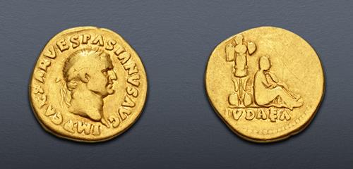 Triton XXVIII Lot: 678. Vespasian. AD 69-79. AV Aureus (18mm, 6.99 g, 6h). “Judaea Capta” commemorative. Rome mint. Struck circa 21 December AD 69-early 70. Good Fine.