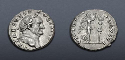 Triton XXVIII Lot: 679. Vespasian. AD 69-79. AR Denarius (18mm, 3.48 g, 6h). “Judaea Capta” commemorative. Rome mint. Struck AD 72-73. Near EF.