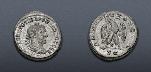 Electronic Auction 584 Lot: 798. Hostilian. AD 251. AR Antoninianus (20.5mm, 3.67 g, 6h). Antioch mint, 4th officina. Near VF.
