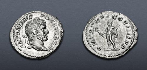 Electronic Auction 584 Lot: 761. Caracalla. AD 198-217. AR Denarius (18mm, 2.60 g, 1h). Rome mint. Struck AD 212-213. Good VF.