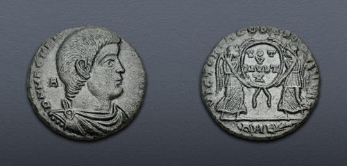 Electronic Auction 584 Lot: 850. Magnentius. AD 350-353. Æ (20.5mm, 4.42 g, 12h). Ambianum (Amiens) mint. Struck AD 351-352. Good VF.