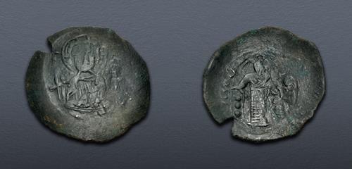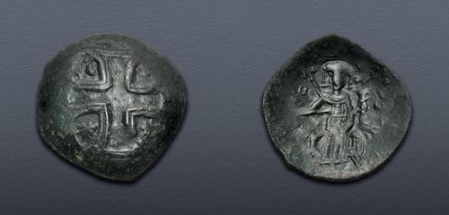 Electronic Auction 584 Lot: 940. BULGARIA, Second Empire. Konstantin I. 1257–1277. Æ Trachy (31mm, 3.96 g, 6h). Veliko Turnovo mint. Struck circa 1257-1258. Near VF.