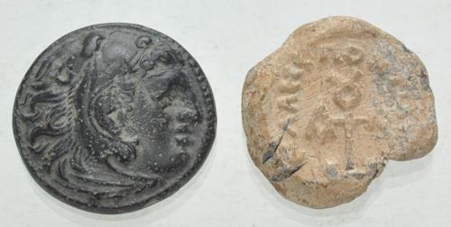 Electronic Auction 584Lot: 1228. MIXED. Greek - Byzantine. Lot of two (2) bronze and lead issues.