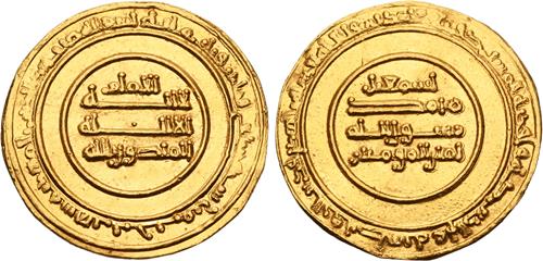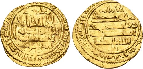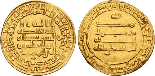 Islamic Auction 9 Lot: 124. ‘Abbasid Caliphate. Al-Qahir. AH 320-322 / AD 932-934. AV Dinar (23.5mm, 4.00 g, 12h). ‘Avenger’ type. Tustar min al-Ahwaz mint. Dated AH 322 (AD 933/4). Good VF, minor weakness in margins.