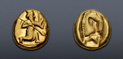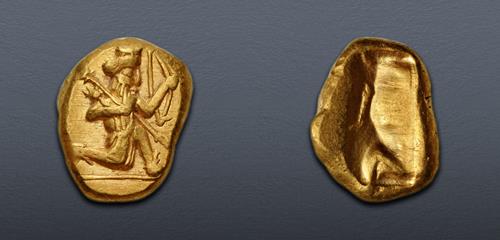 CNG Feature Auction 129 Lot: 336. PERSIA, Achaemenid Empire. temp. Darios II to Artaxerxes II. Circa 420-375 BC. AV Daric (14mm, 8.32 g). Lydo-Milesian standard. Sardes mint. Good VF.