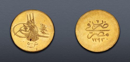 CNG Feature Auction 129 Lot: 750. INDIA, Princely States. Hyderabad. temp. Mir Usman Ali Khan II. AH 1329-1368 / AD 1911-1948. AV Ashrafi. Haiderabad mint. Dated AH 1344 and RY 15 (AD 1926). NGC MS 64.