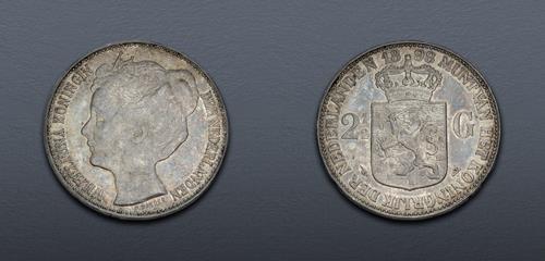 CNG Feature Auction 129 Lot: 786. NETHERLANDS. Wilhelmina. 1890-1948. AR 2½ Gulden (37mm, 24.97 g, 6h). Utrecht mint; muntmeesterteken: halberd and caduceus. Dated 1898. NGC AU 58.