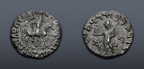 Electronic Auction 586 Lot: 325. INDO-SKYTHIANS. Azes. Circa 58-12 BC. AR Drachm (17mm, 2.24 g, 12h). Good VF.