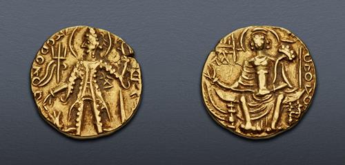 Electronic Auction 586 Lot: 335. INDIA, Kushan Empire. Huvishka. Circa AD 151-190. AV Dinar (20.5mm, 7.81 g, 12h). Main mint in Baktria (Balkh?). VF.