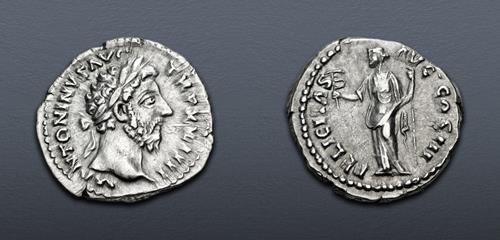 Electronic Auction 586 Lot: 626. Marcus Aurelius. As Caesar, AD 139-161. AR Denarius (17mm, 3.39 g, 6h). Rome mint. Struck under Antoninus Pius, AD 159-160. Near EF.